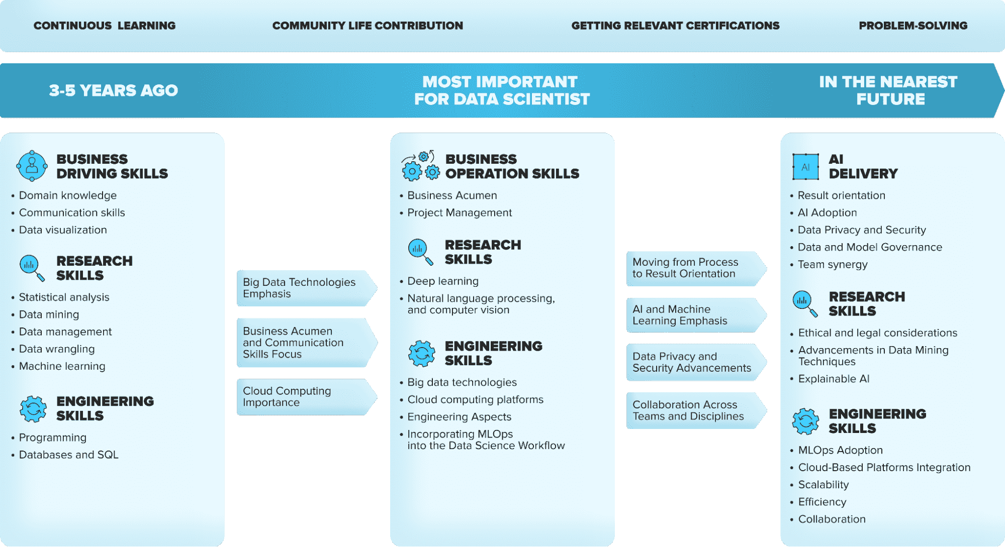 Data Science — це міждисциплінарна область, тож для досягнення успіху потрібно розвивати кілька напрямів водночас.