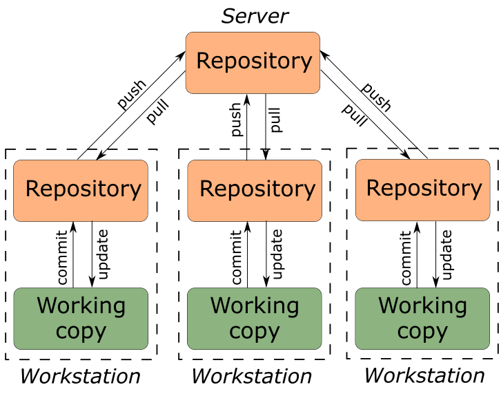 • Распределённая архитектура — каждый участник имеет копию всей истории проекта;