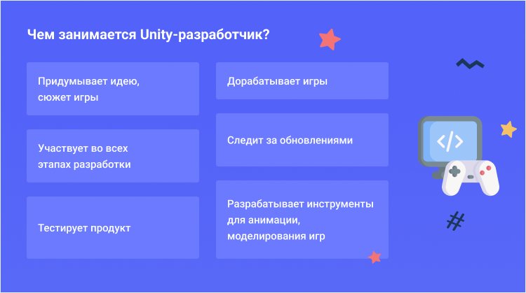 Unity-разработчик не просто пишет код, а создает впечатление от игры. Поэтому нужно понимать основы:
