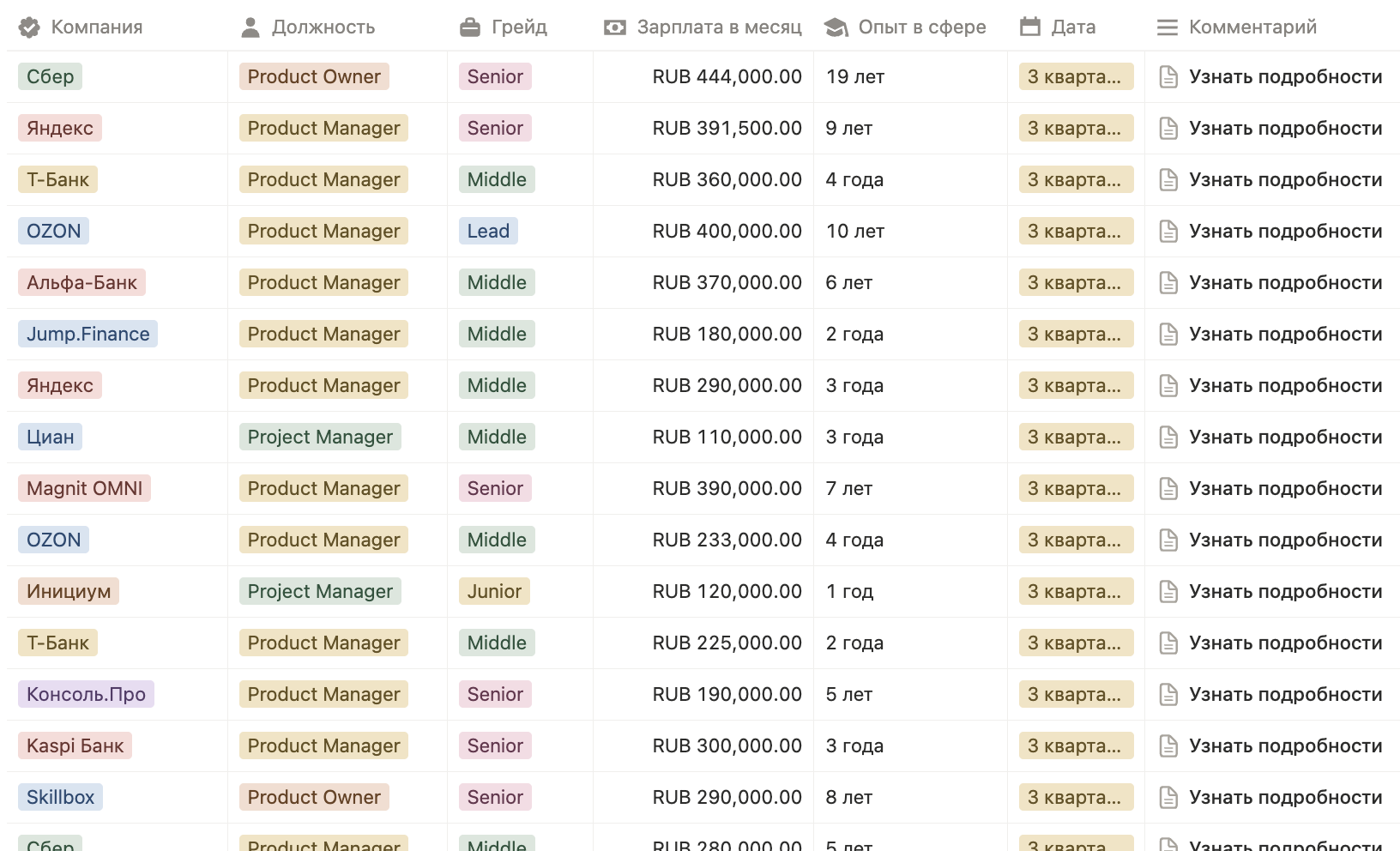 | Middle Product Manager | 2–5 | 80 000 – 130 000 | Уже ведет собственные направления продукта, отвечает за метрики |