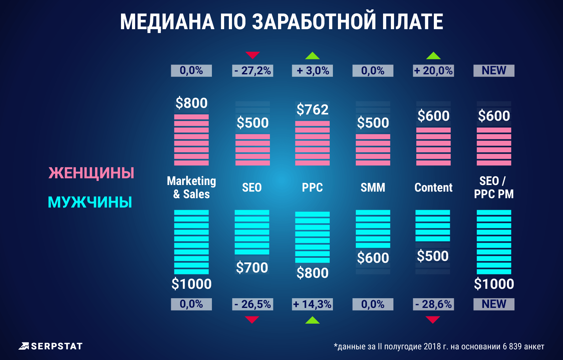 Как видно, уровень заработка напрямую зависит от позиции и масштабов ответственности. Дополнительно на размер выплат влияет отрасль: например, SEO‑эксперты, работающие в fintech, iGaming или SaaS‑направлениях, могут получать в среднем на 20–40 % больше, чем коллеги в менее конкурентных нишах.
