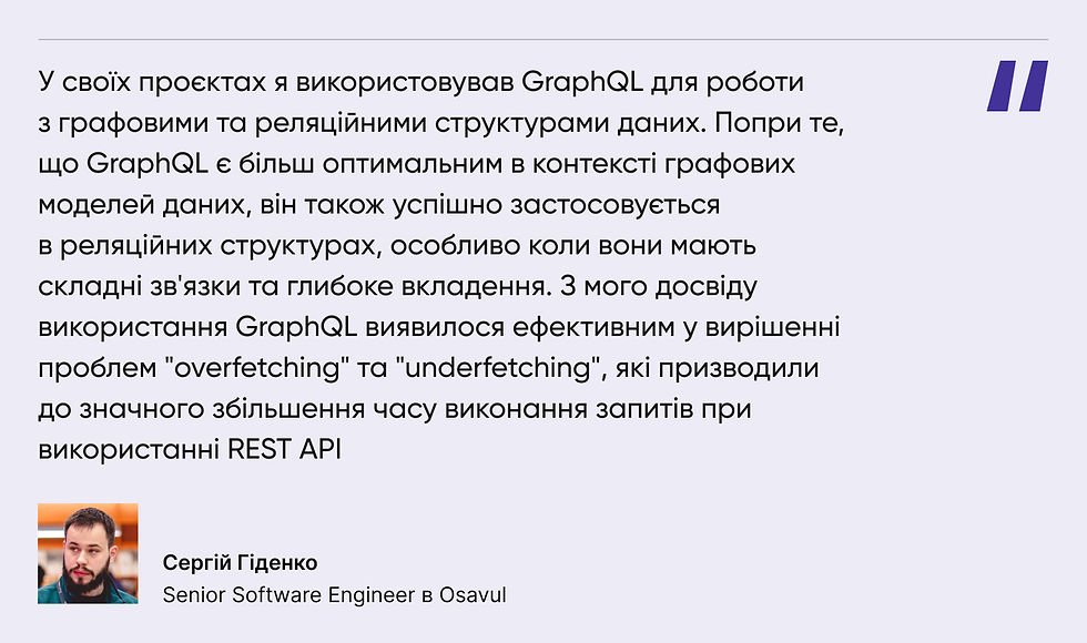 • Складність кешування. У REST кешування базується на URL, тоді як у GraphQL потрібно реалізовувати складніше логічне кешування по полях.