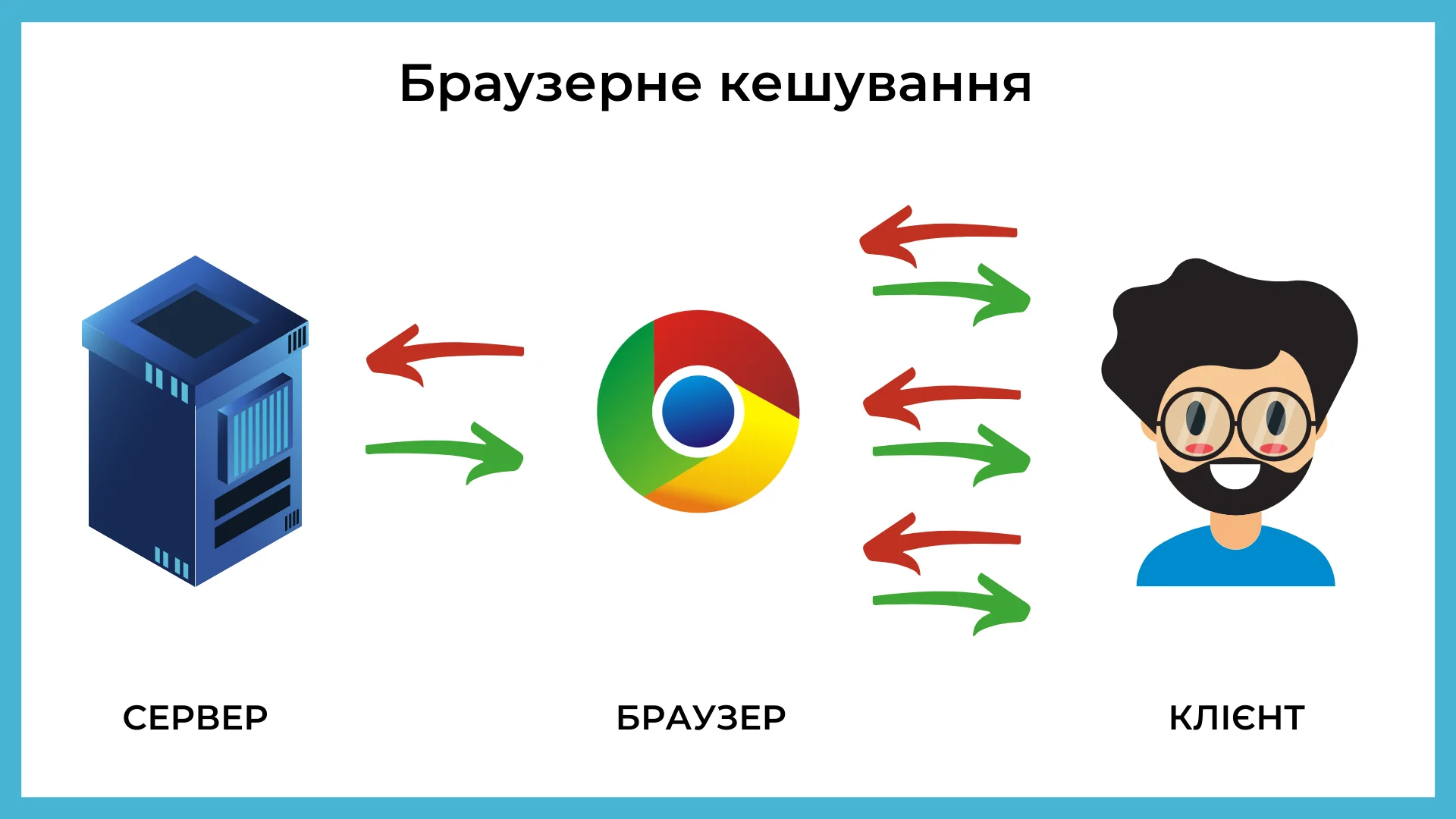 | Браузерний кеш | Комп’ютер користувача | Зменшення часу завантаження сторінок | Статичні ресурси (JS, CSS, зображення) |